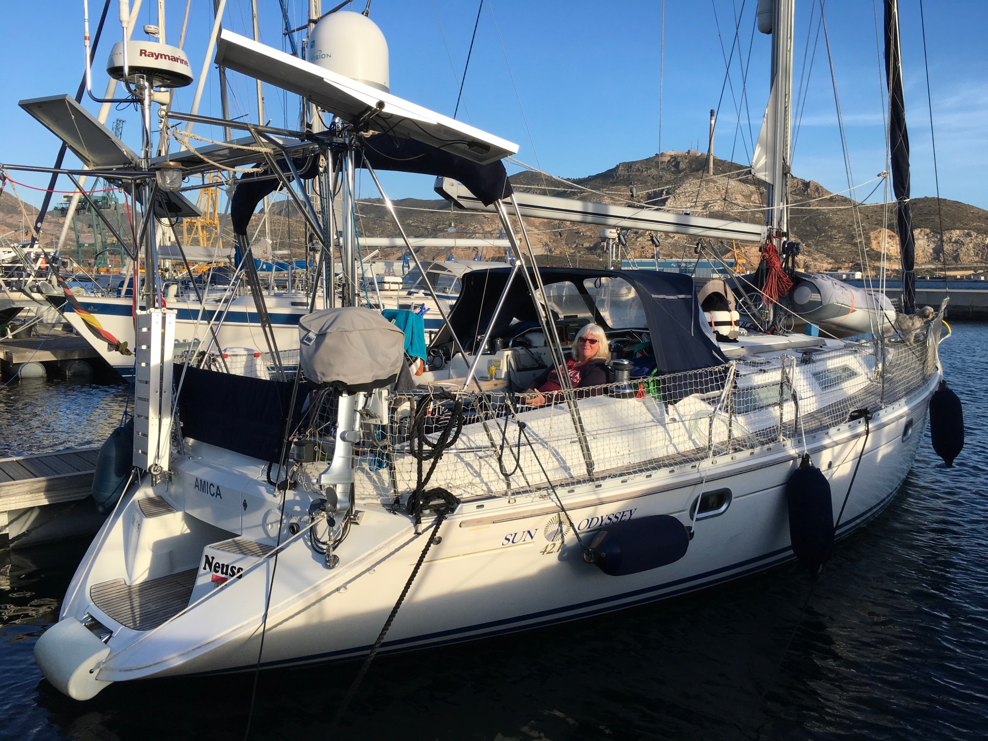 Seit dem 31.03.17, also genau heute vor einem Jahr,  auf einem schwimmendem Zuhause mit wechselnden Standorten, war das die richtige Entscheidung? Viele wollten uns abraten, immer wieder dieses „mein Gott, das könnt ich nicht“  oder „Ihr seid aber mutig“, aber muss im Schrebergarten das Leben enden? Warten auf das Altersheim, oder gibt es noch Anderes Leben hinter der Dorfgrenze? Und wieso mutig??? Wir haben das beste Leben, dass man sich vorstellen kann. Also haben wir uns nicht beirren lassen und haben unsere ˋAmica ´immer weiter für unsere Reise in den angeblichen Ruhestand aus -und umgerüstet. Und dann war er da, der Ruhestand. Seit dieser Zeit haben wir so viele Menschen und neue Orte kennen gelernt wie fast in unserem vorherigen ganzem Leben nicht, ok, möglicherweise leicht übertrieben, aber viel fehlt nicht. Rückblickend, was war vorher? Man lebte in seinem Häuschen oder man kannte möglicherweise den nächsten Nachbarn, und dann, wen hat es interessiert wie es Dir geht, wer nahm sonst aus Deinem näherem Umfeld Anteil an Deinem leben? Ein Beispiel: du gehst mit Deinen Hunden aus dem Haus, links rum, rechts rum, egal, Du begegnest Menschen, die du schon mal gesehen hast, die blicken zu Boden oder sonst wo hin, egal, sie hasten vorbei. Oder aber Du gehst in einem Hafen von Bord, triffst auf Gleichgesinnte, die Du erst vor ein paar Tagen das erste Mal getroffen hast und schon heißt es zu deinem Hund „Hey Toni, how are you?“, danach die Frage nach dem Wetter und was machen wir am Nachmittag. Jeder hilft hier Jedem, ohne Gegenleistung zu erwarten, wohl wissend das man sich sehr wahrscheinlich nicht Wiedersehen wird , weil die Wege in alle Himmelsrichtungen auseinander gehen. Dabei ist es gleichfalls egal ob du einen Monohull von über 50 Fuss, einen dicken ˋCat´ oder nur einen alten Seelenverkäufer hast, der nur noch von Panzerband zusammengehalten wird. Es sind Wind und Wellen die zusammenschweißen. Es haben sich schon einige befreundete Crews zu einem Treffen auf den Balearen angekündigt. Beim Ankern in schönen Buchten oder im nächstem Hafen trifft man sich dann doch wieder auf einen gemeinsamen Sundowner. Wir hoffen auf noch eine weitere schöne Zeit auf dem Wasser und ja, für uns war es die richtige Entscheidung. Wir könnten uns gar nicht mehr vorstellen, unseren „Coolen Lifestyle“ (Zitat eines kanadischen Seglerkollege) gegen unser altes Leben einzutauschen. Vom fast immer schönen, und vor Allem warmen Wetter gar nicht zu reden. Bei jedem Wetterbericht im Fernseh für Deutschland überkommt uns das buchstäblich kalte Grausen.